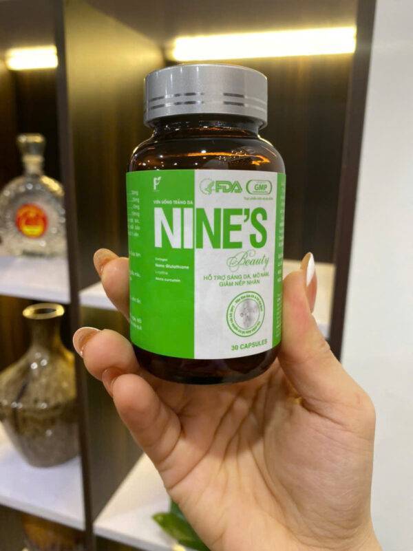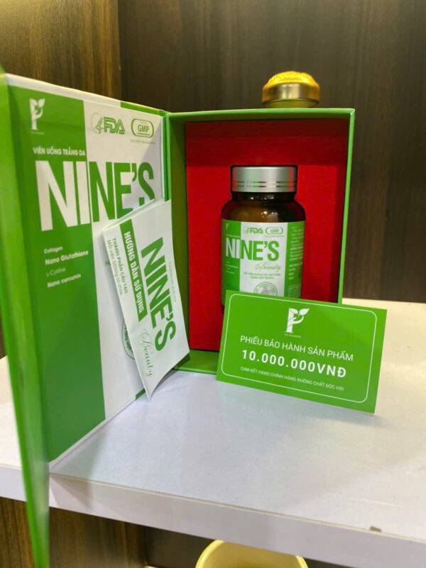 Viên uống trắng da hỗ trợ điều trị nám Nine’s Beauty với thành phần hàm lượng cao Glutathione, bổ sung thêm collagen và vitamin nuôi dưỡng tái tạo làn da trắng hồng tự nhiên, tràn đầy sức sống, làm chậm quá trình lão hóa.